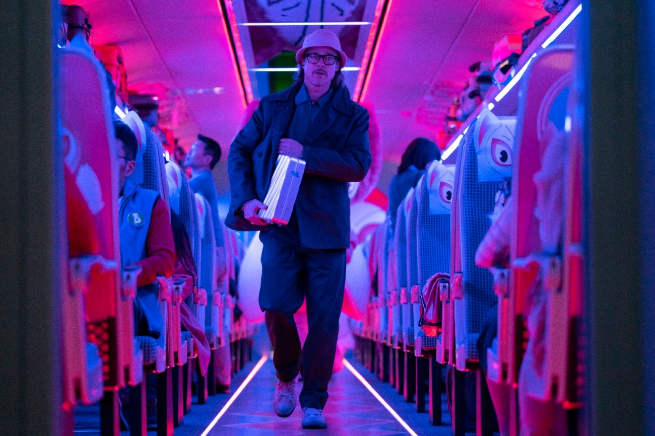 Bullet Train ressuscite pour notre plus grand bonheur les formules des années quatre-vingt-dix quand l’irruption dans le paysage cinématographique de Quentin Tarantino avec Pulp Fiction et ses gangsters cools et volubiles, conjuguée au succès de The Usual Suspects de Bryan Singer et son intrigue alambiquée, avaient donné naissance à un véritable sous-genre d’imitateurs. Sous-genre qui comprend des films comme 2 jours à Los Angeles, Killing Zoe et l’excellent Dernières heures à Denver (un chouchou des Chroniques). Leitch et son scénariste Zak Olkewicz (Fear Street – Partie 2: 1978) font entrer en collision tous les tropes de ces « neo-polar » post-Tarantino avec le tropisme nippon de Kill Bill et des comics de Frank Miller pour obtenir un neo-noir sous stéroïdes dopé à l’action hyperkinétique de 87Eleven. En dépit (ou à cause) de son physique d’Apollon Brad Pitt s’est à quelques exceptions prés (Troie , Mr & Mrs Smith) toujours refusé à jouer le jeu du blockbuster à grand spectacle, tentant d’imposer une figure d’acteur de composition au service de réalisateurs pointus (chemin qui l’a conduit à devenir producteur reconnu avec sa compagnie Plan B). Même quand il accepte de jouer dans de grosses productions il aime y composer des personnages décalés, excentriques (son personnage des Ocean’s Eleven quasiment toujours en train de manger à l’écran). C’est encore le cas avec Bullet train où la star quinquagénaire incarne Ladybug (Coccinelle), un tueur à gages pathologiquement malchanceux qui sort d’un burn-out et reprend du service en remplacement d’un collègue malade. Son Ladybug est à la fois faillible, attachant mais particulièrement létal. Après un an de thérapie, persuadé d’avoir atteint la plénitude il dispense ses conseils affreusement banals et irritants. Pitt joue une variation d’un type de personnage qu’il connait par cœur et se repose sur son charisme et sa coolitude naturelle pour incarner cette fusion improbable de l’Inspecteur Clouseau et de John Wick.