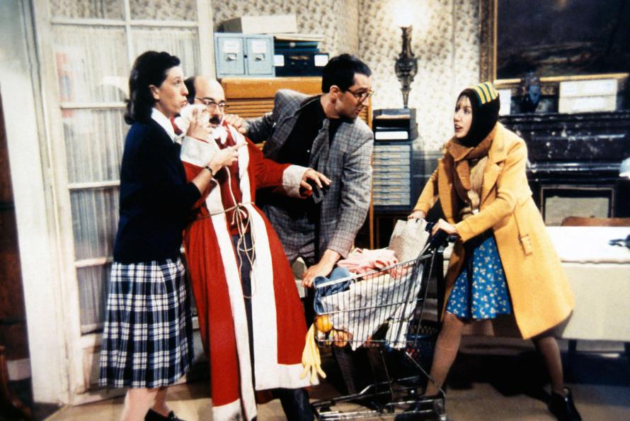 Oser écrire sur Le père noël est une ordure, c’est s’attaquer à un monument, c’est un acte d’outrecuidance, tant rarement un film fut marqueur d’une époque, tout en ayant si peu mal vieilli, 40 ans après, et pourra encore repasser lors des fêtes de fin d’année pendant 40 ans encore. Car ce n’est pas le cinéma, pour un succès modeste, mais bel et bien la télé et ses rediffusions multiples lors des vacances de fin d’année, tellement comme en contre phase de l’esprit de Noël, qui l’a rendu culte. Sorti en pleine canicule (déjà) lors de l’été 82, pour un film de Noël, avec la RATP et la ville de Paris qui avaient refusé la campagne d’affichage du film face à la vulgarité du titre mais surtout à « l’atteinte au mythe enfantin » (argument de l’époque). L’équipe du film a même fait croire à la Mairie, afin d’obtenir les autorisations de tournage, que l’œuvre allait s’appeler Les bronzés fêtent Noël. Et encore le titre originel était Le Père Noël s’est tiré une balle dans le cul !! Mais la troupe du Splendid elle-même s’est dit que ce n’était pas jouable ainsi… Mais même avec son titre édulcoré, tout demeure question de curseur. En effet, un des distributeurs du film, dans le sud de la France, avait fait rajouter un sticker au titre, mettant un « presque » devant « une ordure ». Car oui, si Le père Noël est une ordure est une comédie grinçante de Jean-Marie Poiré devant laquelle on explose de rire en permanence c’est aussi une description féroce d’une galerie de personnages assez mesquins, voire ignobles, chacun-e- dans leur classe, et leur caste. C’est une terrible et joyeuse provocation, une formidable satyre dont l’humour noir peut en effet faire l’effet d’une petite bombe. En effet, les critiques seront au moment de la sortie pour le moins assez divisées.