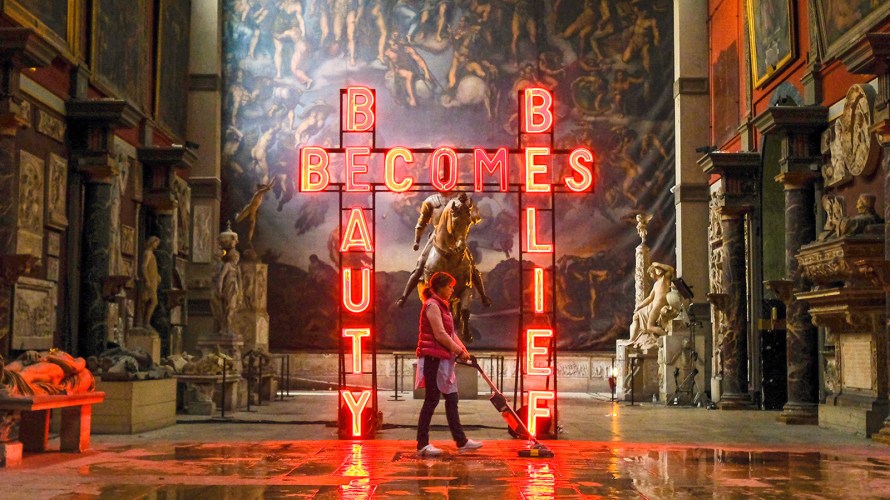 Le film est nuancé autant qu’il est coloré, il nous parle avec justesse de l’audace, de l’espoir. Dans une mise en scène par moment fantaisiste, qui fait du bien et s’explique par le lieu. Les beaux-arts, forcément foutraque, exponentiel, démesuré, et avec un débordement de bizarreries contemporaines et abstraites, avec par moment des œuvres pour le moins douteuses, notamment l’art du pourrissement, légèrement moqué dans le film… C’est aussi le poids du quotidien, dans ce que l’on perçoit de la répétions des gestes, des habitudes, des horaires pour une Maria qui étouffe, et dont la rencontre avec l’univers de l’école, la tendresse joyeuse d’Hubert va la renverser, et nous aussi un peu avec. C’est donc un questionnement sur l’amour, sur la nécessité de se réinventer, tour en acceptant les affres d’une routine quotidienne désarçonnante, qui n’était pas dans livres de princes et princesses lors de notre divine enfance. Karin Viard est une Maria très convaincante, on ne voit plus l’actrice mais l’héroïne du quotidien, qui sous nos yeux va éclore doucement. A cet égard une des scènes de nue devant les étudiant-e-s va donner l’occasion à Karin Viard de montrer une sensibilité, une émotion, une vérité carrément bluffantes. Convaincante et engagée. Grégory Gadebois est fidèle à tout ce qu’il nous montre en ce moment. Ces choix de films sont les bons, et ces choix d’interprétation dans les films sont encore meilleurs. Ici, il est juste parfait en doux rêveur pas naïf pour autant et qui croît en l’autre, qui a le sens de l’autre. Il est comme ça Grégory, il ne joue pas, il est, et c’est un plaisir à regarder. Une mention également pour Noée Abita, qui capte la caméra avec une folle sensibilité, ce qui était évident dans le récent Les passagers de la nuit et que l’on suit depuis Ava (2017).