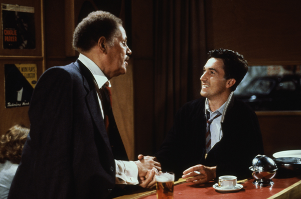 Les plans donnent un vertige de plaisir à la caméra, en développant autant le génie de l’artiste sur scène, que ses sacrifices existentiels, pour en arriver à une telle maîtrise de son art. Dexter Gordon est Dale Turner et réciproquement. Le jazz coule dans ses veines, dans le moindre de ses mouvements, dans sa voix brulante qui montre l’homme consumé, dans ce décalage poétique avec la vérité matérielle des hommes. Dale Truner, c’est l’incarnation du Jazz dans le cinéma de Tavernier. C’est son héros et devient volontiers le nôtre. C’est comme une superposition des arts pour notre plus grande jouissance auditive et visuelle. Avec un jalonnement de pépites, comme Eddy Mitchell qui passe au moins toute sa soirée au bar, qui après s’être envoyé cul sec un breuvage qui semble costaud, tombera à la renverse, de dos et droit comme un I… Dale étant aux premières loges : « J’veux la même chose que lui !!! « . Schmoll ayant déjà pu dire : « Boire ou conduire, moi j’ai choisi, j’ai pas le permis« .