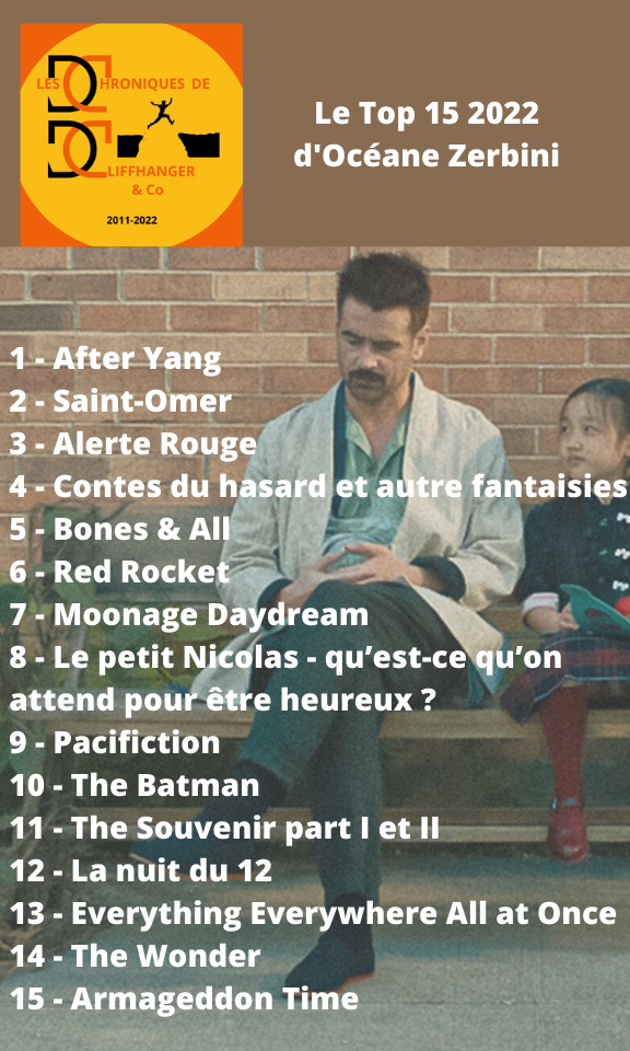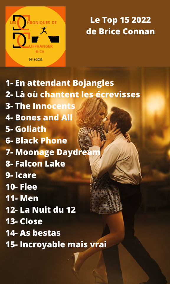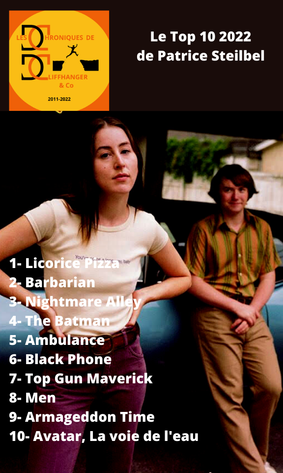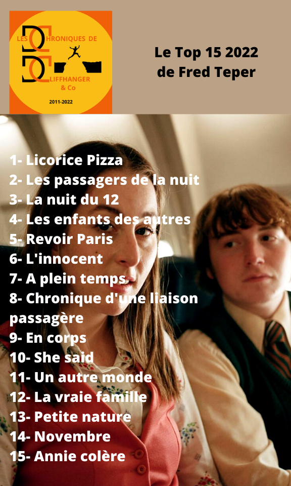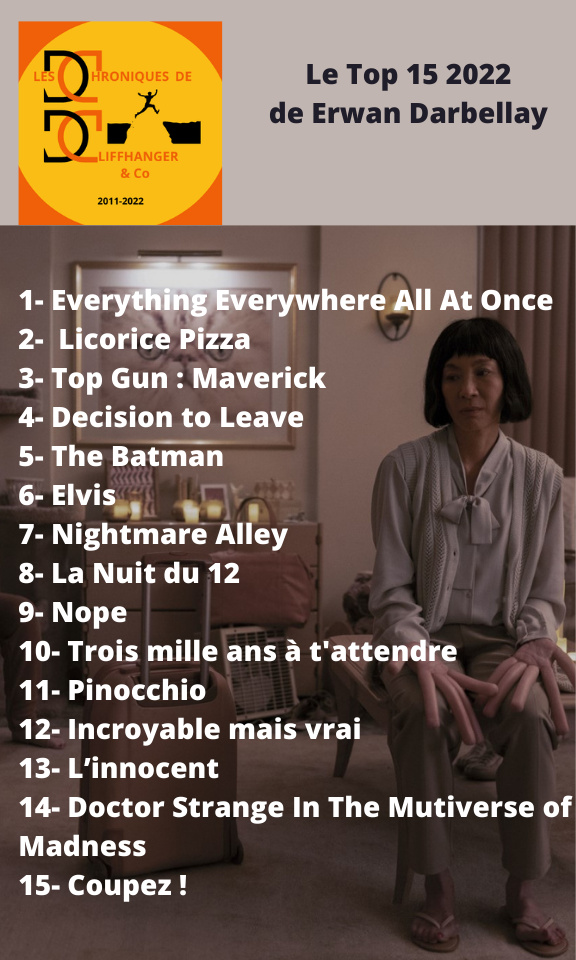 Tip/Top LES TOPS 2022 DE LA REDACTION Par La rédaction des Chroniques de Cliffhanger & Co le décembre 28, 2022 • ( Poster un commentaire ) et les tops séries de : Partager : Cliquer pour partager sur X(ouvre dans une nouvelle fenêtre) X Cliquez pour partager sur Facebook(ouvre dans une nouvelle fenêtre) Facebook Cliquez pour partager sur LinkedIn(ouvre dans une nouvelle fenêtre) LinkedIn Cliquez pour partager sur Pinterest(ouvre dans une nouvelle fenêtre) Pinterest J’aime chargement… Similaire Catégories :Tip/Top Tagué:After yang, Bruno Reidal Confession d'un meurtrier, En attendant Bojangles, EVERYTHING EVERYWHERE ALL AT ONCE, Freaks out, Les passagers de la nuit, Licorice Pizza, Plus que jamais, TOP 2022