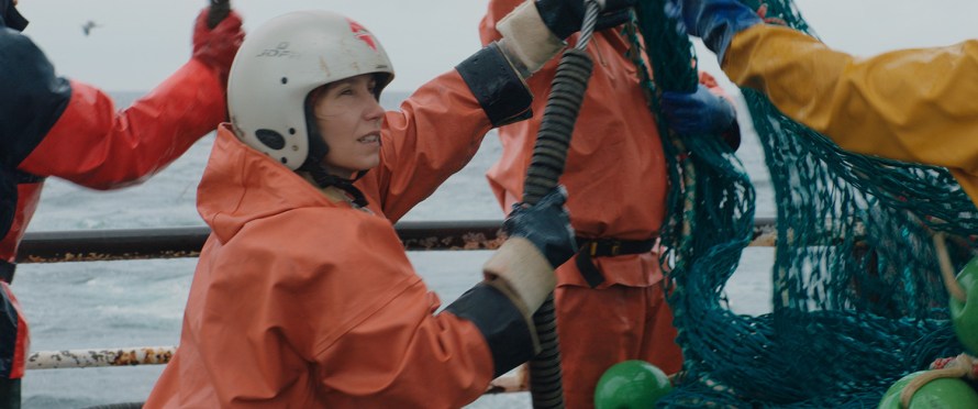 Lili est sans attaches, « les murs la rendent folles« , dit-elle à un moment. La mer liberté, c’est l’infini et le contraire de l’enfermement, seule à cet endroit et dans ce moment, elle se sent terriblement vivante. Elle préfère encore prendre le risque de se noyer, de mourir libre, plutôt que de vivre entre 4 murs dans une résidence pavillonnaire. Au niveau du casting, Dinara Drukavora est donc devant et derrière la caméra pour jouer Lili. Elle est totalement habitée par un personnage où elle s’est forcément reconnue, identifiée : « Le tournage était très dur. Physiquement, émotionnellement et psychologiquement. C’était une transe, un état de concentration intense. Les enjeux pour moi étaient immenses. La grande traversée de doutes, de peurs, et de solitude. » La transe qu’elle évoque ici est évidente et bouleversante à l’écran. Les marins qu’elle croise seront bourrus d’émotions, et sauront parfaitement déployer ce que la cinéaste attendait. A ce jeu-là, Sam Louwyck dans le rôle de Ian est poignant d’authenticité, alternant une bienveillance tellement chaleureuse et une dureté à fleur de peau. Grand Marin, c’est comme une douce caresse, il faut se laisser porter, bercer, et face à la mer, on partagera alors avec Lili presque corporellement nous aussi cette universelle aspiration de liberté.