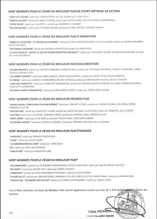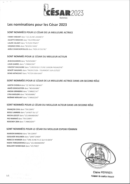 La 48ème nuit des César aura lieu le 24 février prochain et les nominations ont été annoncées ce mercredi. La cérémonie qui sera présidée par le comédien Tahar Rahim sera présentée de manière collégiale par Leïla Bekhti, Jérôme Commandeur, Jamel Debbouze, Emmanuelle Devos, Léa Drucker, Eye Haïdara, Alex Lutz, Raphaël Personnaz et Ahmed Sylla en direct de l’Olympia. L’an dernier c’est le film de Xavier Giannoli Illusions Perdues qui avait triomphé avec sept statuettes. Cette année, L’innocent de Louis Garrel arrive en tête avec 11 nominations suivi de La nuit du 12 (10), En corps et Pacifiction – Tourment sur les îles (9), Les amandiers et Novembre (7), A plein temps et Saint Omer (4).