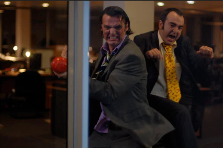 C’était au départ la première idée de scénario à laquelle Yvan Le Bolloc’h et Bruno Solo avaient pensé pour l’adaptation sur grand écran de Caméra Café : emmener toute la smala de la série dans un séminaire grandeur nature pour mieux en renouveler les rapports de force et les situations comiques. Une idée vite abandonnée au profit d’un Espace Détente assez inattendu dans sa virulence mais finalement trop forcé et grossier pour prétendre à un pamphlet digne de ce nom. Sans doute boostés par les deux millions d’entrées de leur passage sur grand écran, les deux compères ont donc jugé bon de ressortir du frigo leur idée de départ, en réduisant le nombre de participants de l’entreprise (six dont eux) et en confiant la réalisation à un Charles Nemes dont ils avaient loué le travail effectué sur La Tour Montparnasse infernale (en gros, faire une comédie française en l’éclairant comme un polar américain… mouais, si l’on veut). Mais si l’on peut en effet louer les efforts de Nemes pour apporter un peu plus de mise en scène par-ci par-là (reconnaissons que le travail du chef opérateur et le choix du format Scope est un plus non négligeable), la recette de départ est restée la même… avec de la surenchère en sus.