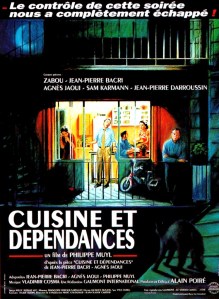 Cuisine et dépendances est l’adaptation de la pièce de théâtre éponyme écrite par Jean-Pierre Bacri et Agnès Jaoui. La pièce avait remporté 4 Molières : Meilleur spectacle comique, Meilleur spectacle du théâtre privé, Meilleurs auteurs et Meilleur metteur en scène. Le couple d’acteurs récidivera avec Un air de famille, joué au théâtre et merveilleusement adapté pour le cinéma en 1996. On y retrouvera la même verve et la même dissection des tréfonds de l’âme humaine. C’est Philippe Muyl qui se collera à la réalisation, cinéaste qui n’avait jusqu’alors signé qu’un seul film et qui venait de la publicité. Il signera ensuite notamment Tout doit disparaître (1996) et Le papillon (2002). Cuisine et dépendances, c’est tout de suite les petits plats dans les grands. Avec cette joie de recevoir surtout un invité, et pas tant les autres. Le cynisme est déjà bien présent après trois minutes, ne serait-ce que dans le non verbal des hôtes et de leurs invité-e-s. Les diners entre amis sont en effet propices au pire des huis clos horrifique en termes d’exacerbation des ressentis… 4 minutes, et Bacri râle déjà !! Au menu du diner, hypocrisie et faux-semblants sous fond d’importance des hiérarchies sociales… A ce jeu là, Georges, l’écrivain ténébreux qui » écrit du sombre, car il écrit ce qu’il voit » ne peut supporter la présence de l’invité star, auteur médiatique. Comme si dans la même soirée, un Houellebecq qui n’aurait pas réussi se retrouvait face à Marc Lévy !! Puis Martine la superficielle refoulée face à Charlotte qui est devenue une dame du monde, spirituelle et profonde.