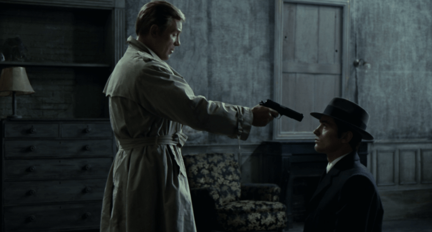 Modèle de film-composite armé d’inspirations diverses pour former cette atmosphère si singulière qui a fait sa renommée, Le Samouraï est une œuvre néo-noir voguant entre les truands des films de gangsters, les enquêteurs de polar, les modèles d’honneur de l’imagerie japonaise et le caractère taiseux des héros sans noms du western. Jef Costello est un nouveau genre de protagoniste, vivant dans un monde aseptisé et profondément grisâtre, habité par les trahisons, les meurtres et les mensonges. Jean-Pierre Melville compose un film à la direction impeccable, épuré au maximum du bla-bla rébarbatif souvent disséminé par le film noir pour permettre une iconisation immédiate de son héros et de ses décors peu ragoutants. Avec la photographie furieusement sombre, à la fois métallique et glaciale, de Henri Decaë faisant office de plastique nébuleuse et pernicieuse, Le Samouraï est une proposition hantée par les zones d’ombres, lesquelles sont – avec un malin plaisir de la part de ses scénaristes Melville et Georges Pellegrin – habilement gardées sous silence, et ce jusqu’à l’arrivée du générique. Dans ce mythe néo-noir, les secrets sont insolvables, emportés dans la mort lorsqu’ils ne sont pas directement responsables des dites morts. En taisant les grandes lignes des motivations de ses personnages et leurs relations respectives au profit de son atmosphère, Le Samouraï va a l’encontre de l’explicatif, quitte à probablement tendre à se suffire à lui-même.