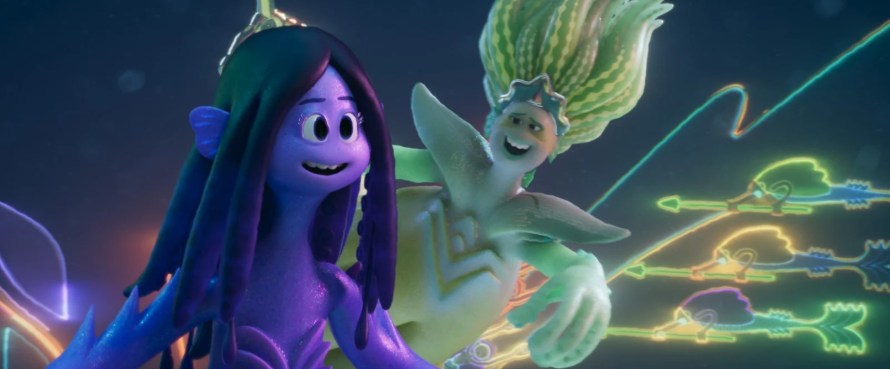 Par son aspect coming-of-age, le traitement de l’influence du trauma générationnel, les tribulations modernes de la relation mère/fille, son portrait de la différence et sa métaphore adolescente pas vraiment subtil, ce Ruby l’Ado Kraken se veut aventure familiale contemporaine, suivant les mutations de la société pour traiter encore plus en profondeur de tous ses sujets de fond. Mais là où le film coince, c’est que Pixar a déjà signé l’année dernière une proposition qui faisait exactement la même chose – en mieux… Avec Alerte Rouge, le studio avait composé un joli teen-movie joyeusement chaotique, habile à la fois dans le traitement de ses personnages et dans l’image de cette adolescente qui se transformait subitement en créature géante contre son gré. Ruby fait alors figure éclatante de redite, tant il explore les mêmes idées et la même propension à laisser reposer la narration sur l’imagination de son héroïne. Au final, Ruby Gillman est en terrain déjà balisé, déroulant alors une histoire rébarbative et pas fraîchement originale, profitant à peine de son humour un peu too much et de son intrigue pas aidée par des twists devinables dès l’introduction. Et s’il tente tout de même de délivrer son quota d’émotions par le prisme de cette relation mère/fille et de l’acceptation de la différence, le film semble déjà essoufflé, n’ayant pas grand-chose à apporter sur le sujet et profitant d’un rythme un peu cadenassé qui manque le coche en mettant presque entièrement de côté l’aspect teen-movie dans sa seconde moitié au profit de son aventure sous-marine.