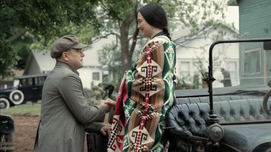Le chiffre parait étrange, mais cela fait effectivement depuis 2016 et son Silence que Martin Scorsese n’avait pas eu les honneurs de la salle de cinéma, son dernier film en date, The Irishman, ayant disposé d’une place discutée au sein du catalogue de Netflix. Le réalisateur continue, pour son nouveau film tant attendu – l’un des plus attendus de l’année, même – sa collaboration avec les plateformes de streaming afin de mettre en boîte avec AppleTv+ Killers of the Flower Moon, adaptation coécrite avec Eric Roth du roman La Note Américaine de David Grann. Ce gros bloc de 3h30 aura posé des questions sur les conditions de sa sortie, mais c’est finalement par la case salles de cinéma que le film se dévoilera – en tout cas, en France. Martin Scorsese y convoque deux de ses acteurs fétiches, Robert de Niro (dont c’est la dixième collaboration avec le réalisateur depuis Mean Streets) et Leonardo DiCaprio (sixième fois pour lui, après notamment Les Infiltrés, Shutter Island et Le Loup de Wall Street), et met en lumière la comédienne Lily Gladstone (révélée par Kelly Reichardt dans Certaines Femmes et First Cow) dont la performance fait déjà l’objet de rumeur quant à une éventuelle nomination aux prochains Oscars – alors même que le film n’est toujours pas sorti. Les rumeurs enflent, mais le fait est que, en réalité, Killers of the Flower Moon est effectivement une œuvre massive, tant par l’ambition de la narration, la méticulosité stupéfiante de sa mise en scène, le travail prodigieux de l’interprétation de son casting et la force vitale de l’histoire tragique qu’il convoque à l’écran.