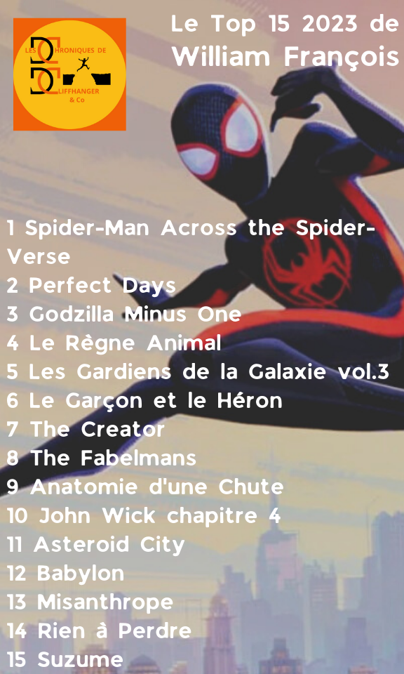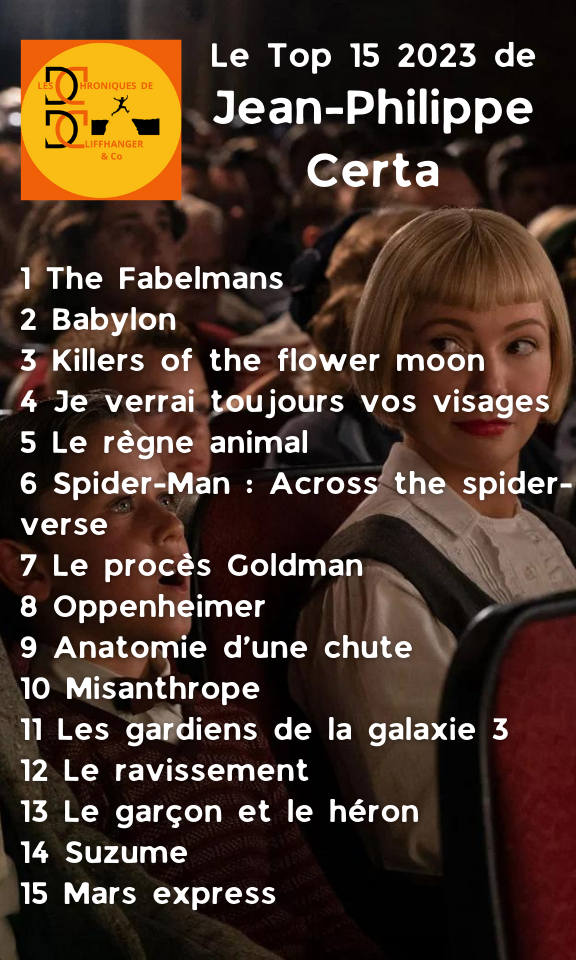 Tip/Top LES TOPS 2023 DE LA RÉDACTION Par La rédaction des Chroniques de Cliffhanger & Co le décembre 29, 2023 • ( 1 commentaire ) Partager : Cliquer pour partager sur X(ouvre dans une nouvelle fenêtre) X Cliquez pour partager sur Facebook(ouvre dans une nouvelle fenêtre) Facebook Cliquez pour partager sur LinkedIn(ouvre dans une nouvelle fenêtre) LinkedIn Cliquez pour partager sur Pinterest(ouvre dans une nouvelle fenêtre) Pinterest J’aime chargement… Similaire Catégories :Tip/Top Tagué:Babylon, Je verrai toujours vos visages, le garçon et le héron, Misanthrope, oppenheimer, Spider-Man - Across the Spider-Verse, Succession saison 4, THE FABELMANS, Tu choisiras la vie