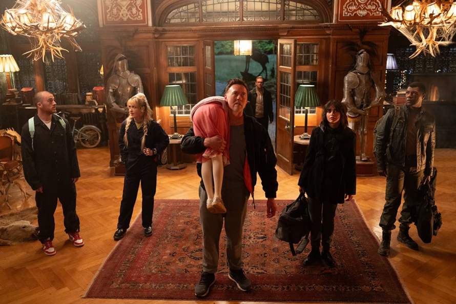 En lisant le synopsis et en voyant les photos vous l’aurez peut-être compris, Abigail reprend à sa sauce la thématique des vampires. C’est décidément de nouveau la mode des buveurs de sang en ce moment entre Vampire humaniste cherche suicidaire consentant et le prochain En attendant la nuit. Une reprise de mode que nous constatons à date, saine, lorsque l’on voit la singularité de ces propositions et la réussite qui en découle. Parce que oui, Abigail a un certain côté inhabituel, ce n’est pas un divertissement paresseux (hormis sur l’écriture mais nous y reviendrons), il aurait d’ailleurs pu avoir une meilleure note. Le film a presque tout pour lui : de la générosité à revendre, des scènes d’action efficaces, un début de mythologie classique mais dépoussiéré avec une montée en puissance qui happe aisément le spectateur (d’autant plus avec l’effet de surprise lorsque l’on ne sait rien du film). Le gros hic ce sont ses personnages. Dans Abigail c’est ainsi toute une galerie qui s’offre à nous puisqu’après avoir enlevé la petite fille (que la bande ignore dangereuse), les malfaiteurs vont se retrouver coincés avec elle au cœur d’un manoir. Entre réunification des forces, chamailleries et dézingage au compte-goutte, on peut le dire, tous les personnages occupent une place fondamentale dans le récit. Le problème c’est qu’ils sont agaçants et pas toujours futés (même le personnage de Melissa Barrera sur lequel le film décide de placer ses billes, par exemple lorsqu’elle enlève le bandeau des yeux de la petite fille, quoi qu’en dise le personnage pour le justifier, que cela soit par son passé à la mords-moi-le-nœud ou le fait qu’elle était supposée être la seule à interagir avec l’enfant, ce n’était quand même pas malin), tous l’incarnation d’un archétype pas très intéressant avec souvent un passé sans saveur voire niaiseux. On citera encore une fois le personnage de Melissa Barrera, omniprésente et pourtant assez agaçante ; on préférait son personnage dans Scream. Mais elle est loin d’être la seule à crisper le spectateur. Entre le regretté Angus Cloud qui surfe sur la vibe Euphoria en proposant grosso modo la même chose, la profondeur en moins, le sympathique Kevin Durand qui joue le grand gaillard très musclé un peu bête sur les bords, ou les fades personnages de Kathryn Newton et William Catlett (on n’évoquera pas le flirt absolument risible entre ce dernier et le personnage de Barrera) on n’est pas vraiment gâtés. Reste tout de même le charismatique Dan Stevens qui est vraiment fun. Son personnage est extravagant et en roue libre en termes d’écriture mais c’est pour la bonne cause, heureusement d’ailleurs qu’il est là.