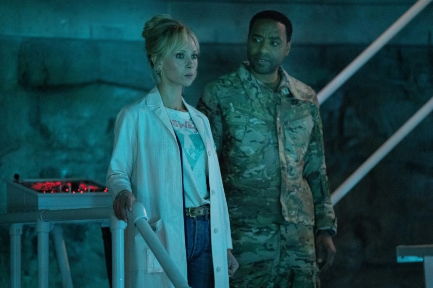 C’était sans compter sur des militaires sortis de nulle part, déjà en possession de plusieurs symbiotes, qui veulent aussi récupérer Venom. Nos amis acculés devront pour assurer leur salut revêtir le symbiote intégral, révélant alors leur position et conviant de fait les monstres à la fête. Il ne faudra pas compter sur autre chose de déterminant pour l’intrigue de ce dernier volet. Ce n’est toutefois pas tout ce que le film a à offrir. Comme tout divertissement malade qui se respecte, ce Venom nous introduit en fil rouge une famille de personnages secondaires tout à fait inutiles, sortes de hippies paumés des temps modernes, menés par un Rhys Ifans qui avait sans doute très envie d’ajouter un nouveau rôle lunaire à sa filmographie via ce personnage obsédé par les extraterrestres. Côté militaire on peut compter sur le solide Chiwetel Ejiofor, toujours là pour assurer un rôle artificiel et inutile avec charisme et panache (son capital sympathie fait qu’on est toujours contents de le voir même si on sait ce que cela signifie en termes qualitatif) mais surtout, et on sort les feux d’artifice, sur Juno Temple. Elle ne joue pas une militaire à proprement parler puisque son personnage est une scientifique mais elle travaille sur les symbiotes dans la base secrète. Son rôle, comme tous ceux du film (pauvre Stephen Graham dont le personnage revient d’entre les morts pour finir en tapisserie), est un véritable cimetière d’intérêt et de bon sens, le film allant même jusqu’à lui inventer une origin story plus ubuesque qu’autre chose. Mais ce n’est pas grave car Juno Temple irradie littéralement chaque scène où elle est présente, elle qui avait déjà récemment portée la très sympathique cinquième saison de Fargo que nous avions chroniquée ici. Nous évoquions les symbiotes, le film va dans son climax final les exploiter. Des symbiotes extrêmement laids sur lesquels nous n’aurons rien de spécial à ajouter puisque tout se passe de commentaire.