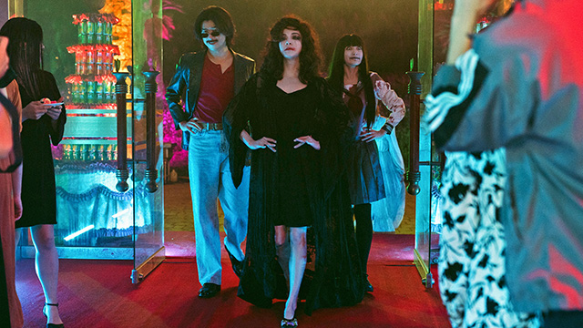 Dead Talents Society est parsemé de séquences d’horreur qui vont de l’étonnante terreur à la comédie burlesque déjantée. Souvent, les deux sont mélangés entrainant un changement de ton sauvage comme lors d’une chute macabre et sanglante. Le scénario comporte également son lot de blagues en tout genre et de références cinématographiques. Comme le fantôme de Jessica (Eleven Yao) qui est devenu célèbre grâce à une vidéo maudite, avec des nuances de The Ring. Ou tout simplement des scènes de talk-shows, des galas où encore des cérémonie types oscars où les stars des morts-vivants sortent pour célébrer la saison des récompenses de l’au-delà.