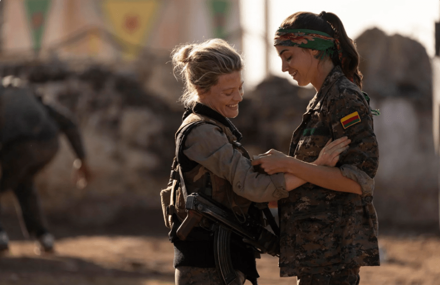 Le casting de cette saison 2 est sans doute l’un des points les plus remarquables de la série. Si comme nous le disions Félix Moati n’est plus de la partie, le renouvellement partiel du casting permet à No Man’s Land de se réinventer un peu, tout en restant fidèle à ses bases. Mélanie Thierry, bien que moins présente dans l’intrigue principale, conserve une aura indéniable qui fait d’elle le pilier indispensable entre les deux saisons. Son personnage, Shamaran, est progressivement mis en retrait au profit de nouveaux visages, comme celui de cette américaine interprétée par Leo Hatton qui reprend contact avec un ancien amour, Jake (Zed Josef), devenu un haut responsable dans le circuit Daech puisqu’il y gère la comptabilité. Cependant, tous les personnages ne bénéficient pas du même traitement. L’arc des YPJ, malgré la forte implication féministe, souffre de personnages parfois moins développés et d’une dynamique de groupe un peu moins accrocheuse. Sarya (Souheila Yacoub), qui prend en importance, manque de relief par rapport à Shamaran, dont la présence magnétique était en comparaison un élément fort (contrairement à la première saison où nous avions le souvenir de l’avoir trouvée antipathique, nous avons eu l’impression cette fois de mieux cerner le personnage). De même, l’arc du journaliste qui cherche à découvrir l’identité de Shamaran semble presque tomber à plat, voire comme un cheveu sur la soupe, n’apportant pas la substance escomptée à l’ensemble de la saison. Ces inégalités dans la caractérisation des personnages, bien qu’elles n’affectent pas complètement la qualité de la série, nuisent à l’impact global de certains arcs narratifs.