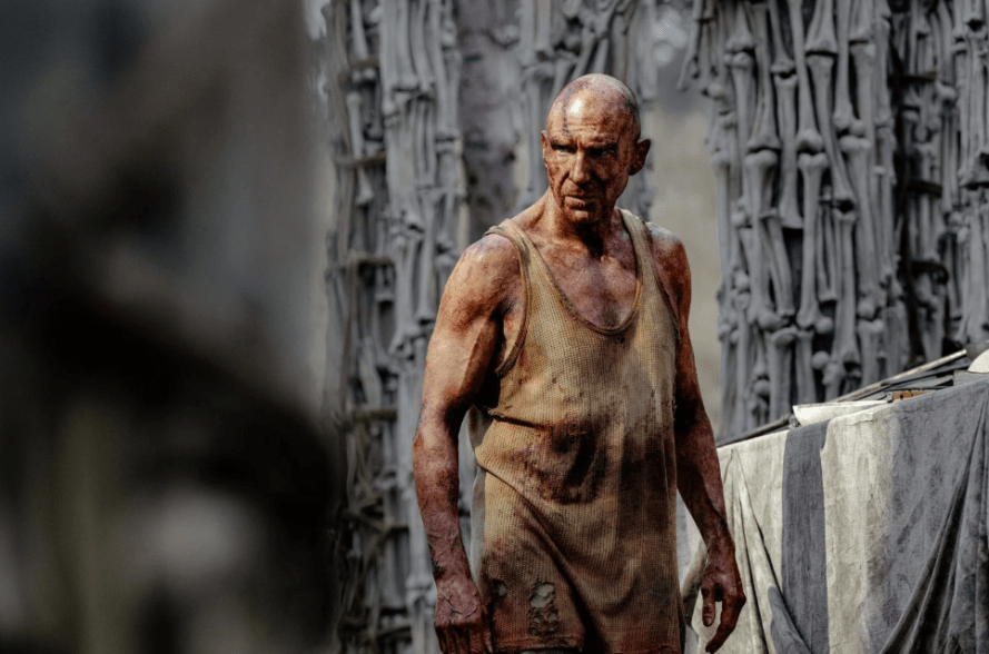 Là où le film faiblit légèrement, c’est dans la quête plus classique d’un médecin, pivot scénaristique qui relance l’intrigue mais n’atteint que rarement la même intensité que la première moitié. Toutefois, Garland parvient à insuffler dès le début du film des éléments symboliques qui ont le mérite de prendre un vrai sens au fur et à mesure de l’aventure, comme le fameux poème Boots de Rudyard Kipling récité et enregistré en 1915 par le comédien Taylor Holmes, déjà entendu dans la bande-annonce, et ici intégré de manière très marquante dans un montage au ressenti fortement déstabilisant. Côté personnages, presque tout le monde a de quoi s’amuser, Aaron Taylor-Johnson brille, loin de ses rôles éclatés comme Kraven, tandis que le jeune Alfie Williams incarne à merveille l’innocence face à la barbarie théorique devenue pratique. Ralph Fiennes surprend dans un rôle à contre-emploi par rapport à ce qu’on a eu l’habitude de voir dans la saga ; seule Jodie Comer semble un peu en retrait, bien que son personnage apporte une réflexion intéressante sur la maladie et la résilience dans un contexte où le mal qui la ronge n’a rien à voir avec l’infection.