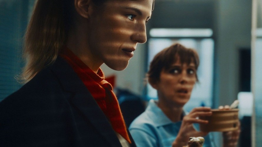Dès son introduction, Mazingarbe pose ses ambitions en quelques plans : on rencontre notre protagoniste, une procureure implacable, voire même carrément détestable, qui met la misère à tous ses paires grâce à son intellect et sa froideur. Mutée dans un petit patelin parce que « trop forte et trop intimidante », Louise se retrouve sous-fifre d’un vice-procureur suffisant qui ne va pas tarder à la mettre au placard. La Pire Mère au Monde démarre comme un Hot Fuzz à la française, le montage ultra-coupé de l’ouverture du film aux plans très stylisés rappelle même le style percutant et musical d’un Edgar Wright cette fois-ci plongé dans les arcanes des tribunaux bleu-blanc-rouge. Pierre Mazingarbe nourrit alors sa mise en scène d’un vrai amour de l’image flashy, découpant ses séquences comme des cases de bande-dessinée pour incruster l’exubérance de ses personnages dans un cadre tout aussi coloré. Narré par la voix de Louise Bourgoin, taillant son rôle sur mesure dès le démarrage, le film évoque alors rapidement ses envies d’absurde et de too-much en empruntant à la comédie pulp. En résulte alors un long-métrage évident de singularité, qui maîtrise ses ruptures de ton avec un malin plaisir pour diriger cette bien curieuse enquête vers une drôlerie à la fois très bien rythmée et foncièrement étonnante.