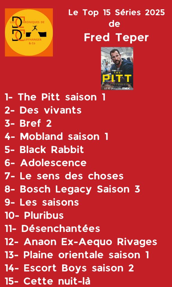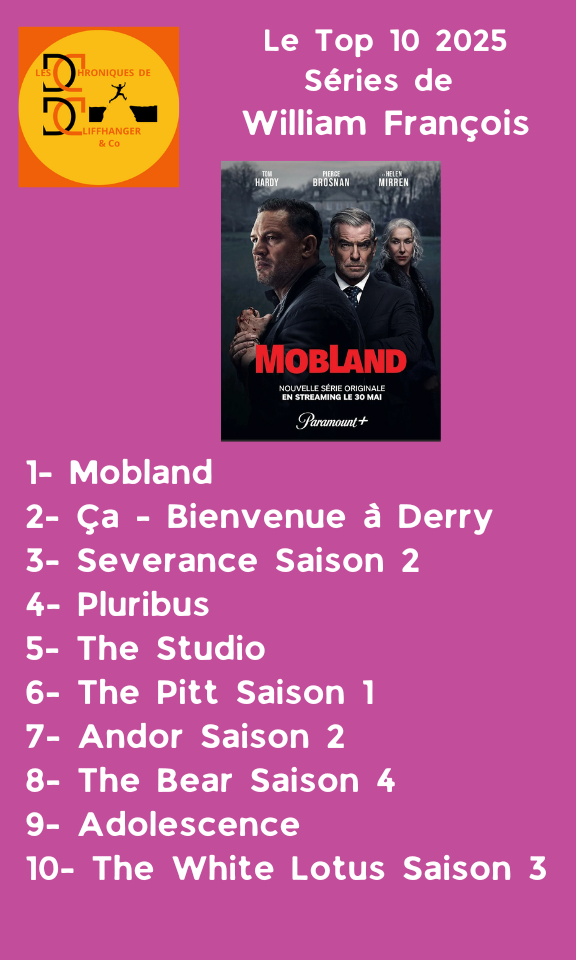 Critiques Cinéma LES TOPS SÉRIES 2025 DE LA RÉDACTION Par La rédaction des Chroniques de Cliffhanger & Co le décembre 31, 2025 • ( Poster un commentaire ) Partager : Cliquer pour partager sur X(ouvre dans une nouvelle fenêtre) X Cliquez pour partager sur Facebook(ouvre dans une nouvelle fenêtre) Facebook Cliquez pour partager sur LinkedIn(ouvre dans une nouvelle fenêtre) LinkedIn Cliquez pour partager sur Pinterest(ouvre dans une nouvelle fenêtre) Pinterest J’aime chargement… Similaire Catégories :Critiques Cinéma