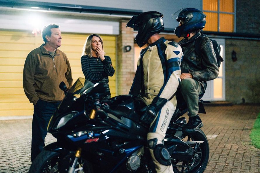 Colin, interprété donc avec une tendresse désarmante par Harry Melling (quelle prestation !), est un jeune homme plutôt effacé et introverti qui vit paisiblement entre son travail d’agent verbalisateur de voitures, ses parents et un petit groupe amateur de chant. Un jour, sa route croise ainsi celle de Ray (Alexander Skarsgård), un motard aussi charismatique qu’énigmatique. Dès les premières minutes, une tension magnétique s’installe entre les deux hommes, et rapidement, Colin plonge dans une relation de soumission avec Ray. C’est par ses yeux candides que le spectateur découvre alors l’univers codifié, mais étrangement accueillant, des bikers gays adeptes du BDSM. Le réalisateur a tenu à ce que son film soit crédible et authentique, notamment pour les personnes issues de cette communauté qui seraient amenées à le visionner. Pour cela, il a collaboré avec des membres du GBMCC (Gay Bikers Motorcycle Club, le plus grand club motocycliste LGBT +), aussi bien devant que derrière la caméra. Le souci du détail est frappant : les scènes de groupe, les vêtements, les dynamiques de pouvoir, la gestuelle et les rituels ne sonnent jamais faux. Ce réalisme, loin de figer le récit, sert de tremplin à la fiction, car Lighton ne cherche pas à faire un documentaire. Il injecte une narration fluide et pleine de nuances, pour raconter la métamorphose de Colin qui apprend à s’aimer et à aimer autrui autrement. Le plus admirable dans Pillion, c’est l’absence totale de jugement (même si la mère de Colin pose, à juste titre, les questions qui fâchent), le film ne cherche pas à édulcorer ni à choquer. Il expose les pratiques BDSM telles qu’elles sont, à savoir des formes d’échanges consentis, codifiés, qui peuvent être sexuelles, mais aussi émotionnelles ou sociales. En accompagnant Colin dans sa découverte de ce monde, le spectateur se voit amené à revoir ses propres conceptions de la normalité, de l’amour, du plaisir et de l’intimité. Impossible de voir Pillion en gardant l’esprit fermé.